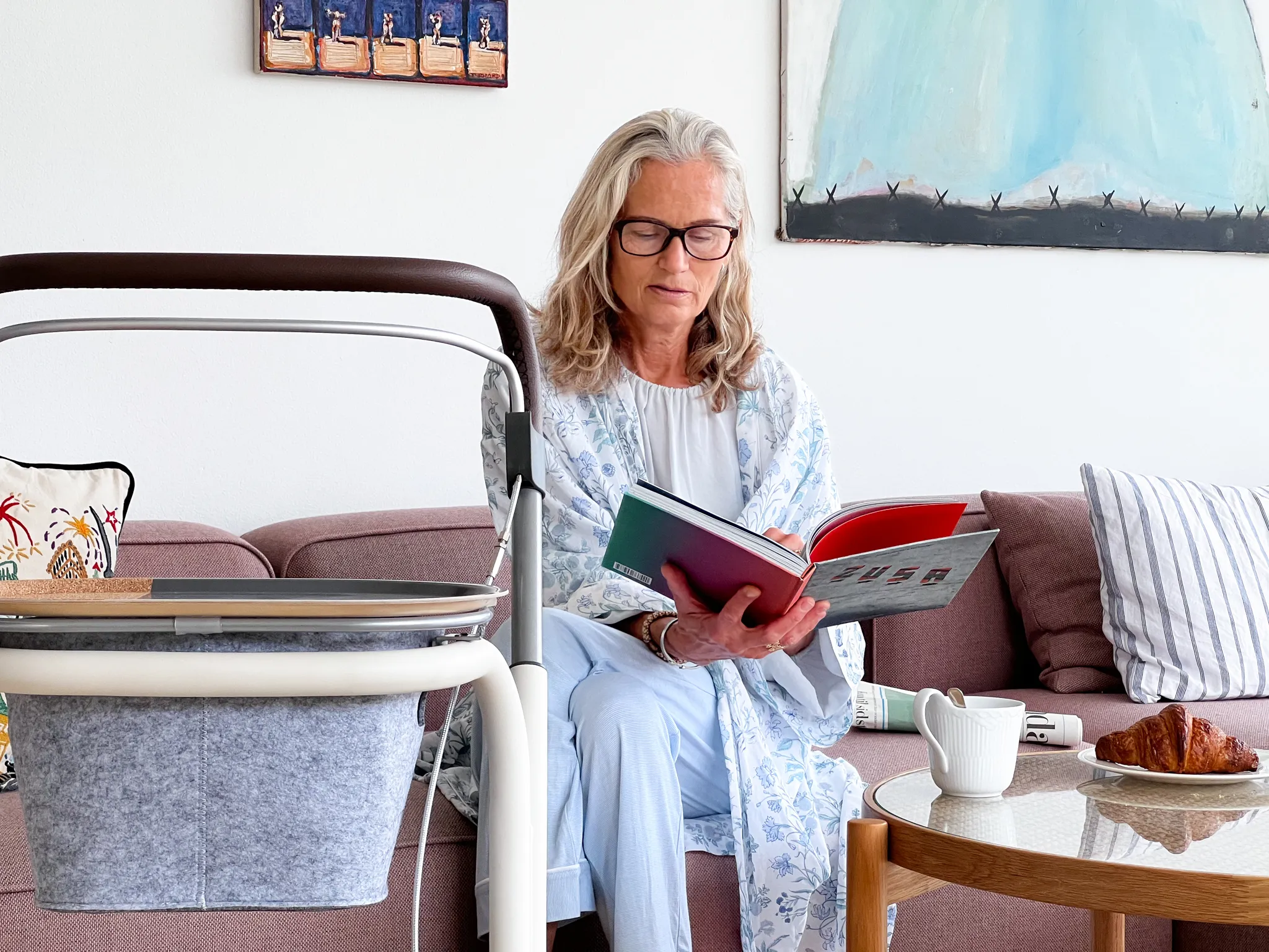 Met de tray en opbergmand neem je alles wat je nodig hebt in één keer mee. Je kop koffie, boek en telefoon.