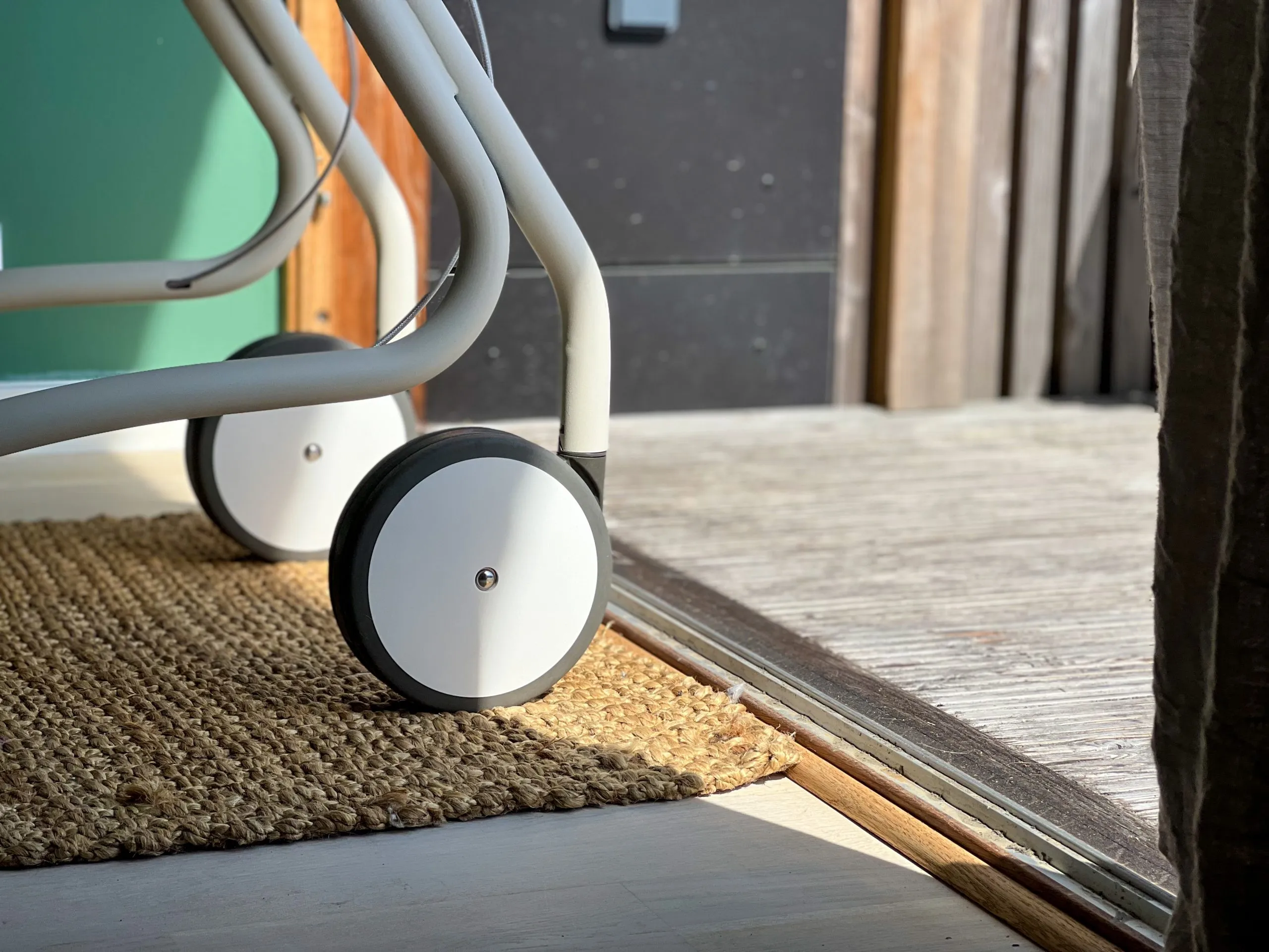 De zachte rubberen wielen rijden soepel en geruisloos over drempels en tapijt. En veroorzaken geen strepen op je vloer.